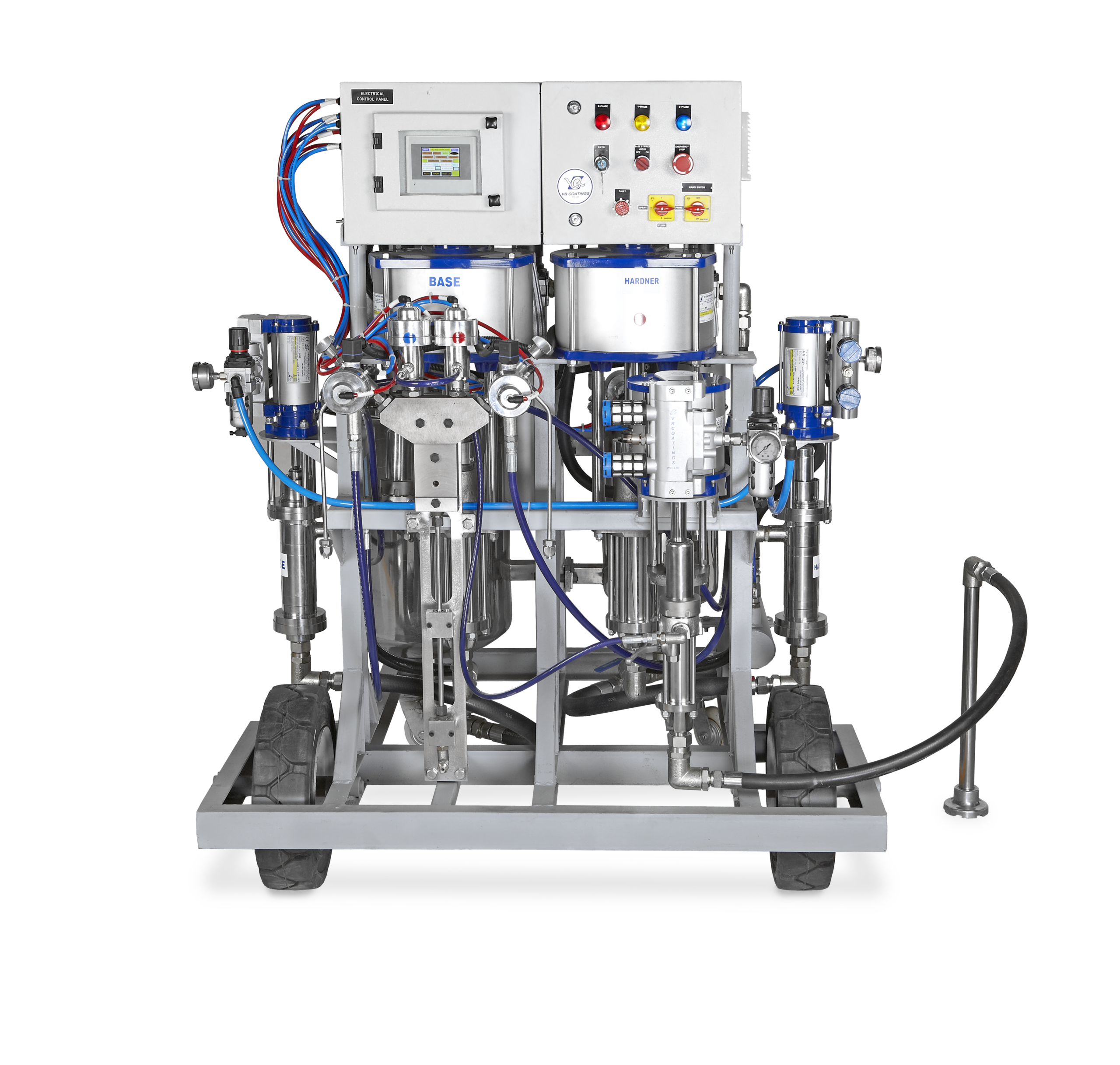 Máy phun 2 thành phần VRC MIX-HP là thiết bị phun sơn công nghiệp chuyên dụng đến từ VR Coatings (Ấn Độ), được thiết kế để xử lý các hệ sơn 2K như epoxy, polyurethane và polyurea với độ chính xác cao.